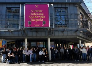 Der 9. Jahrgang der Goetheschule hat heute einen Ausflug zum Ballhof-Theater in Hannover unternommen. Beton, Licht, Ton, schräge Formen, Live-Videoimpressionen und viel Stoff zum Nachdenken