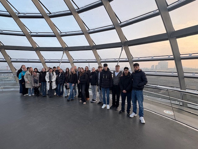 Im Anschluss folgte ein persönliches Gespräch mit Herrn Dr. Matthias Miersch, der sich trotz seines eng getakteten Terminkalenders Zeit für uns als Schulgruppe aus seinem Wahlkreis nahm. Er beantwortete unsere Fragen ausführlich und gab spannende Einblicke in seinen politischen Alltag. Der Besuch der Reichstagskuppel rundete den Tag schließlich ab, bevor es – erneut nicht ganz ohne Abenteuer – mit der Deutschen Bahn zurück nach Barsinghausen ging.